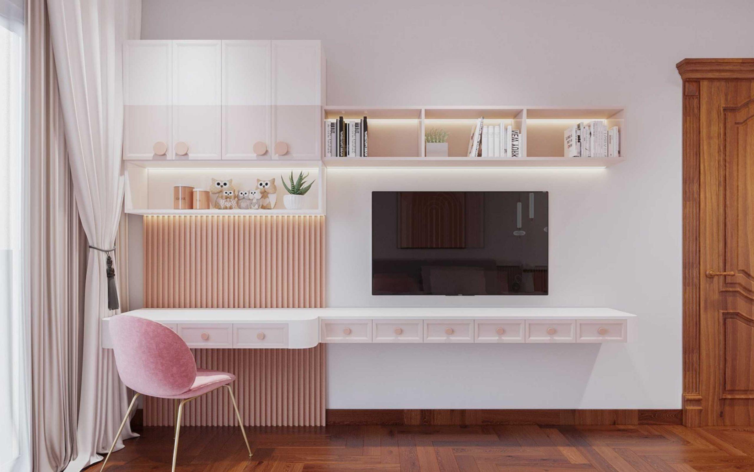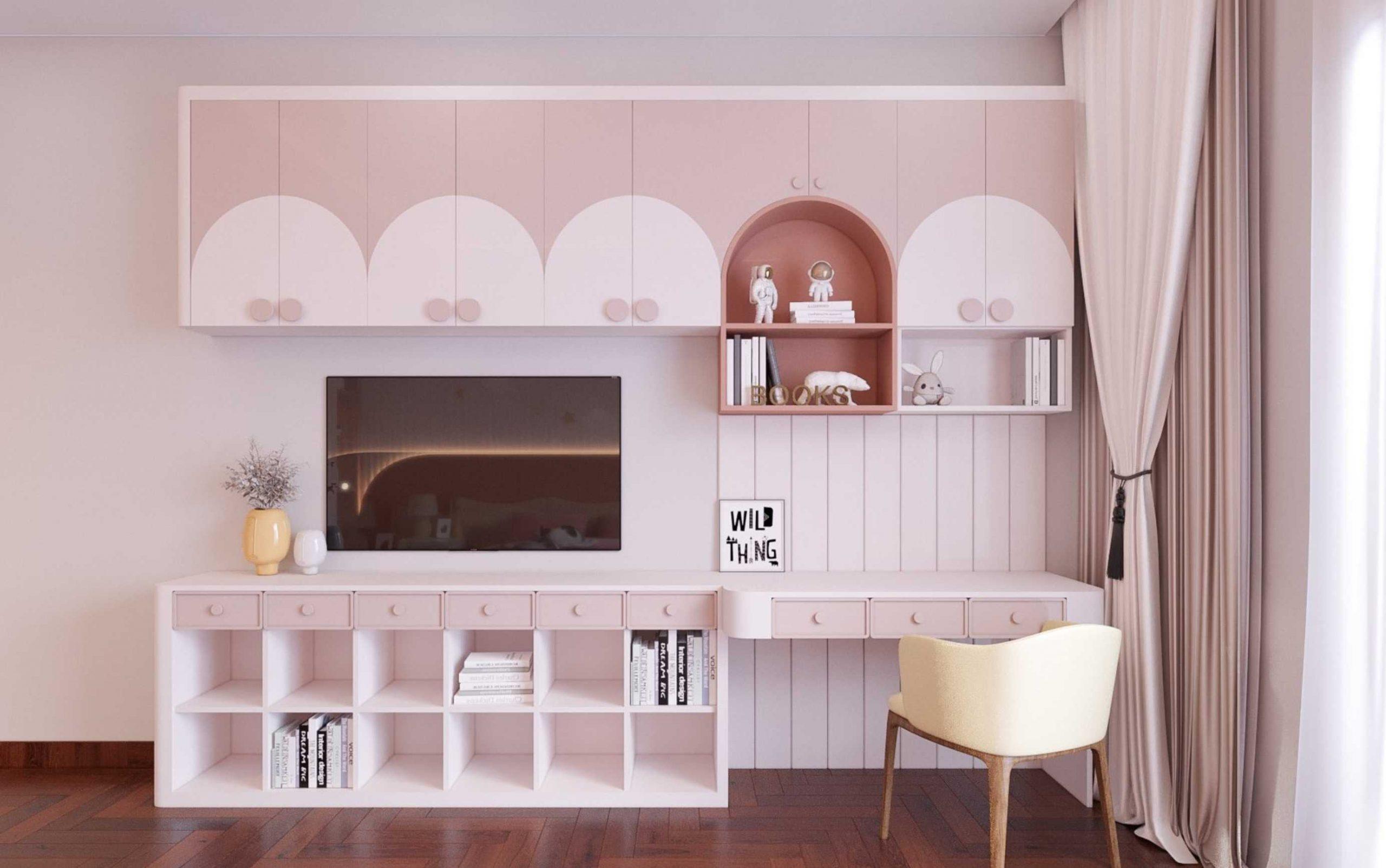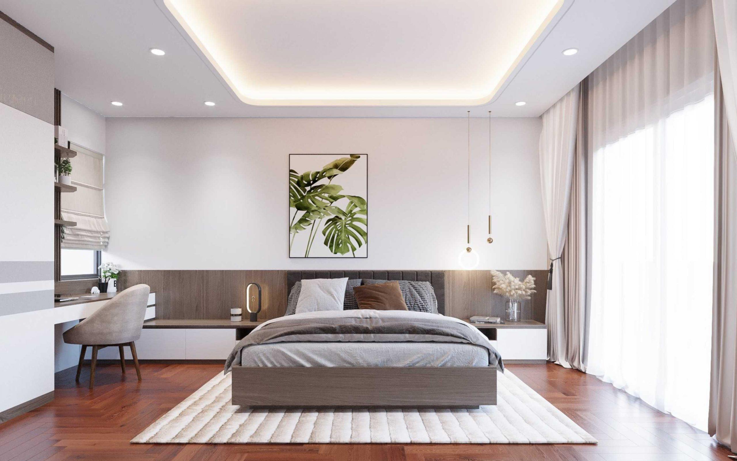 Không gian phòng ngủ con sử dụng vật liệu gỗ Sồi kết hợp màu sắc Sơn tạo cảm giác Trẻ trung và Thư giãn.