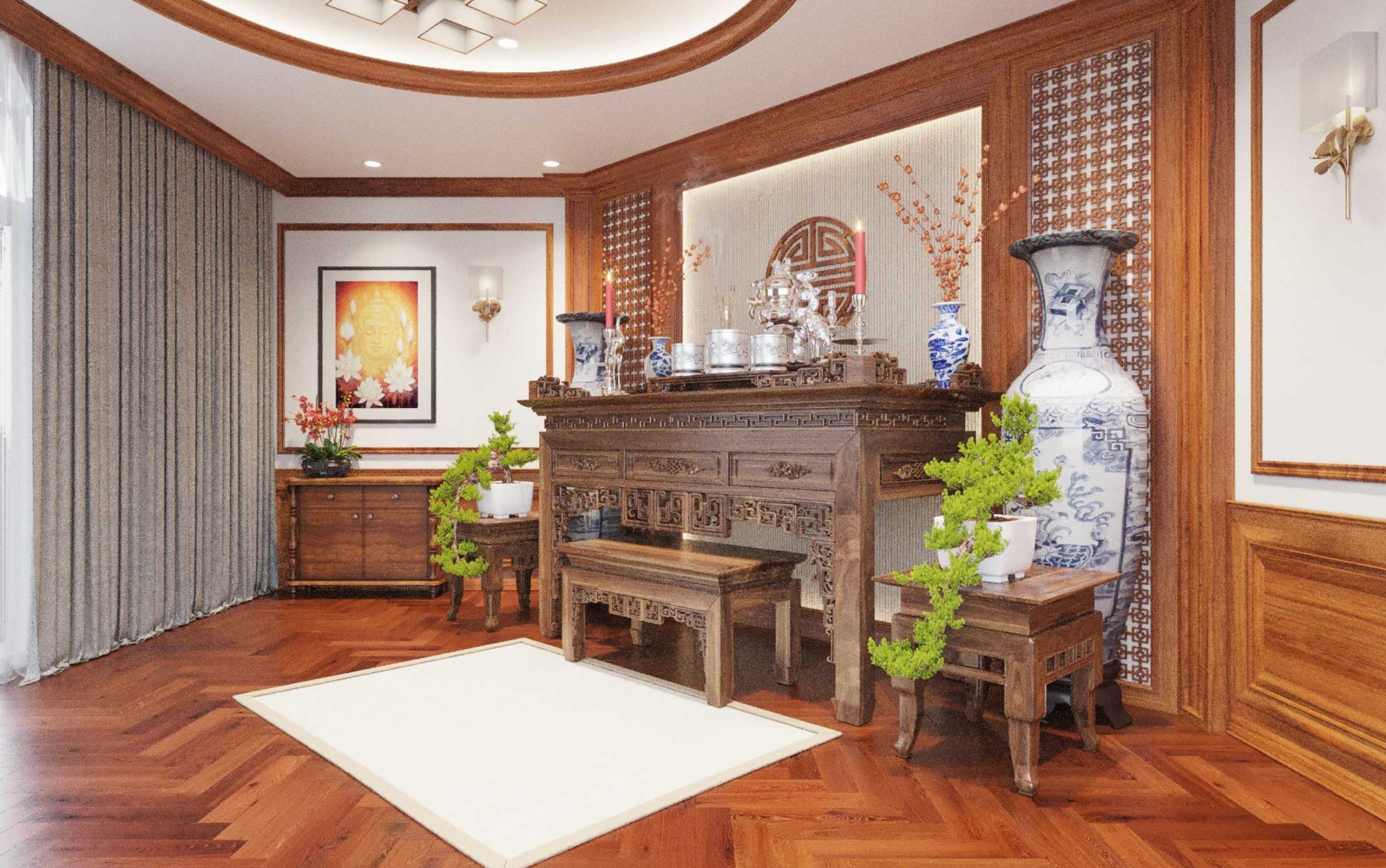 Mỗi một không gian mà Amorehome thực hiện đều mang một nét cá tính, sự sang trọng và lịch lãm riêng để phù hợp với sở thích của chủ sở hữu. Cùng trải nghiệm mẫu Thiết kế Nội thất Biệt thự phong cách Romatic kết hợp gỗ Gõ đỏ của Amorehome.
